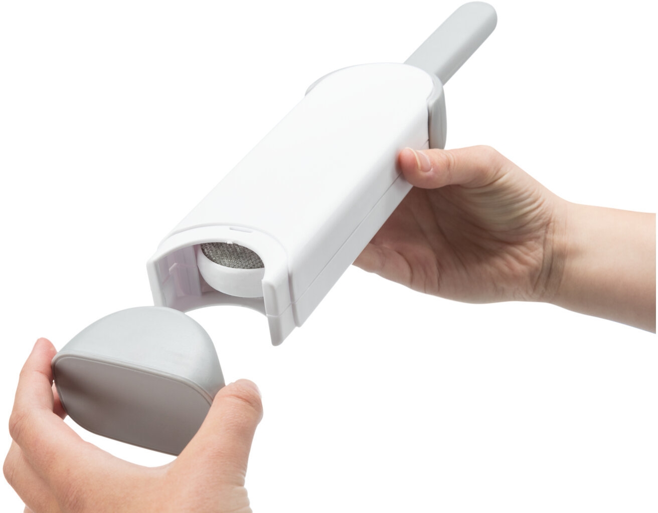 Kartáč na odstranění srsti z textilu, s čistící základnou, 33cm, bílá/šedá