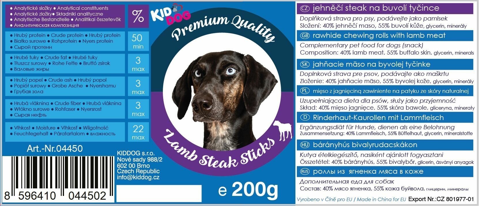 KIDDOG jehněčí steak na buvolí tyčince - PREMIUM QUALITY 200g dóza