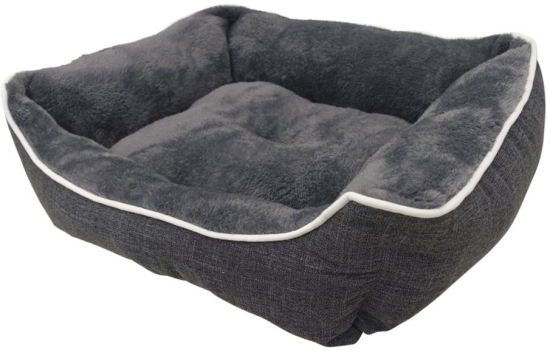 Obdelníkový plyšový pelíšek Nobby Classic Arno pro psy a kočky. Barva šedá. Spodní strana opatřena protiskluzovými body. Pelíšek je plně vyplěný dutým vláknem. Vyrobeno z mikrovlákna.