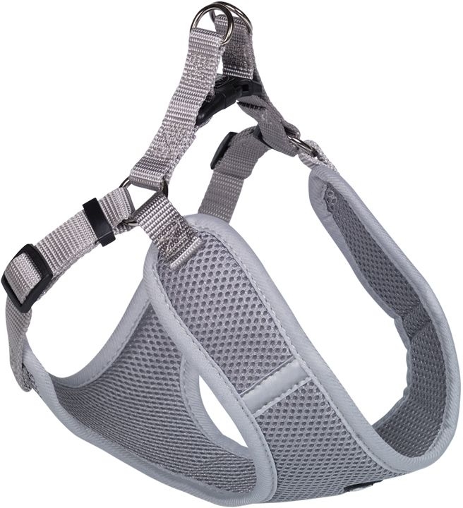 Hrudní postroj Nobby pro psy. Pohodlný střih a provedení, netrhá srst, netlačí a nedře pejsky. Reflexní prvky a nastavitelný popruh. Barva šedá. Obvod hrudníku 58-69cm.