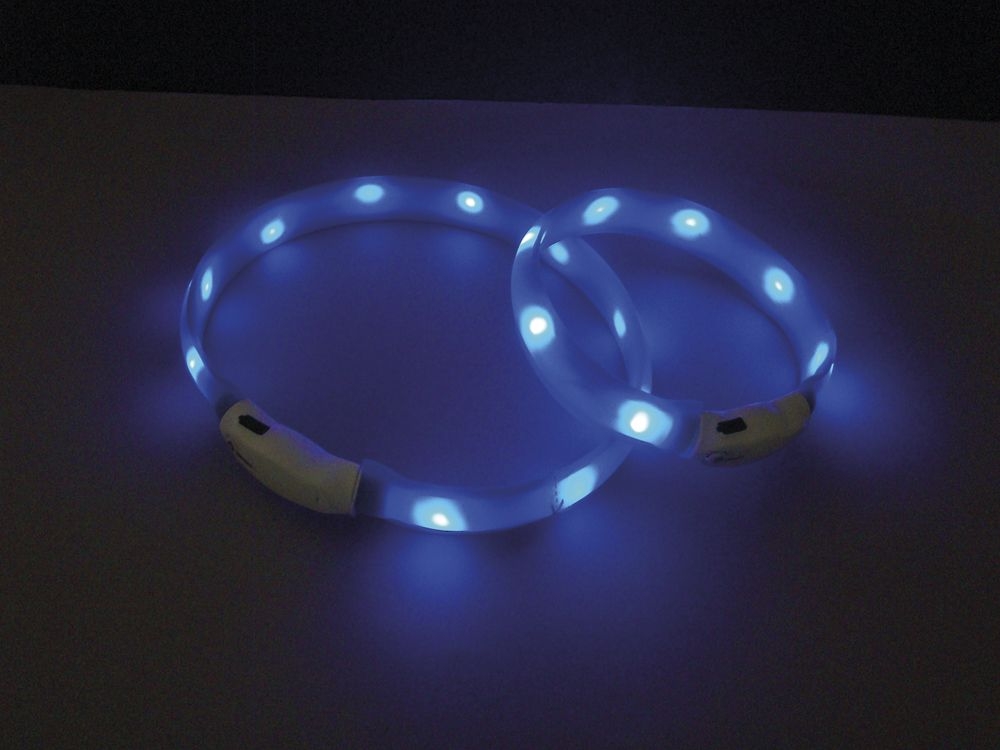 Široký svítící obojek Nobby potažený silikonem. Je vhodný především pro psy s delší nebo středně hustou srstí, ve které běžné obojky zanikají a vydávané světlo pak není dostatečně intenzivní. Obojek může blikat a nebo nepřetržitě svítit. Snadné USB dobíjení bez výměny baterií.