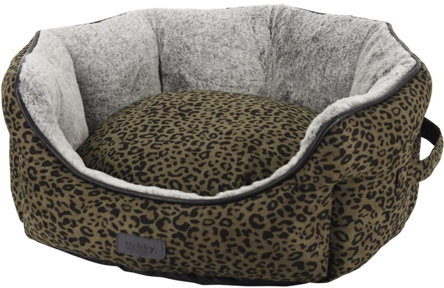 Oválný pelíšek z kolekce Nobby Comfort LEO. Oboustranný vyndávací polštář. Barva leopardí hněď, mikrovlákno. Celkový rozměr je 45 x 40 x 19 cm.
