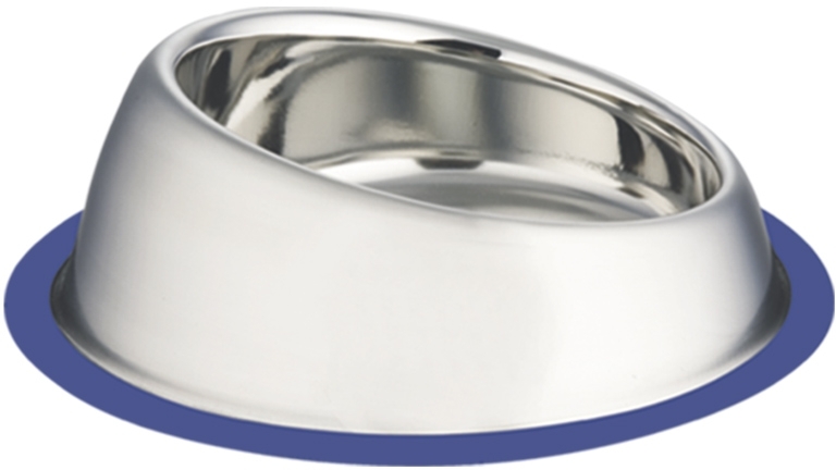 Těžká nerezová miska se sklonem dává misce elegantní vzhled a umožňuje snadnější přístup do misky. Objem 950ml, velikost ø 18cm. Mátná vnější strana.