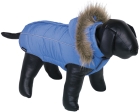 Vzhledově velmi moderní zimní bunda značky Nobby. Kabátek pro psy je funkčním doplňkem v zimním období. Barva modrá s kožíškem a odnímatelnou kapucí. Obleček má elastický hrudní pás, zapínání na hrudníku a u krku na suchý zip. Vnější použitý materiál ze syntetických vláken, který chrání před deštěm a větrem.