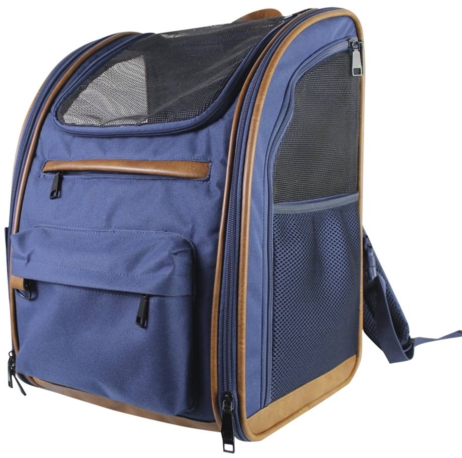 Odolný batoh z omyvatelného mikrovlákna pro psy a kočky s bohatým prostorem pro ukládání věcí Nobby Tomek v modré barvě.