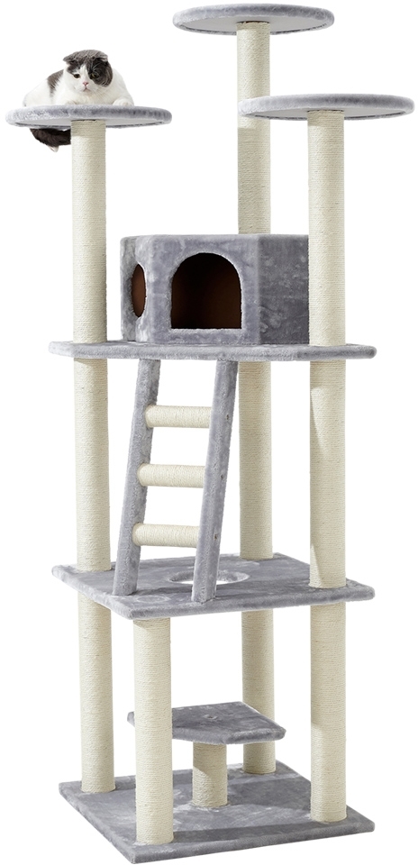 Nobby patrové škrabadlo Nobby Classic Sultan pro kočky. Výška 198 cm, kmeny ø 9 cm. Barva šedá se světlým sisalem. Základna 60 x 60 cm, domeček 40 x 40 x 25 cm.