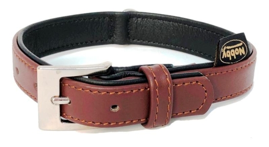 Prošívaný obojek hladká telecí kůže NAPPA. Odolnost vůči nečistotám. Barva hnědá. Pro obvod krku 50-58cm. Délka 60cm, šíře 28/32mm.