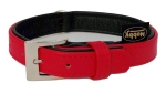 Prošívaný obojek hladká telecí kůže NAPPA. Odolnost vůči nečistotám. Barva červená. Pro obvod 25-30cm. Délka 32cm, šíře 14/16mm.