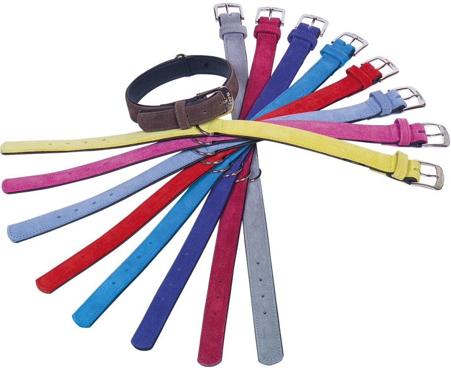 Elegantní kožený obojek Nobby se semišovou úpravou. Celková délka 27 cm, vhodné pro obvod krku psa 20 - 25 cm. Šíře 12/14 mm.