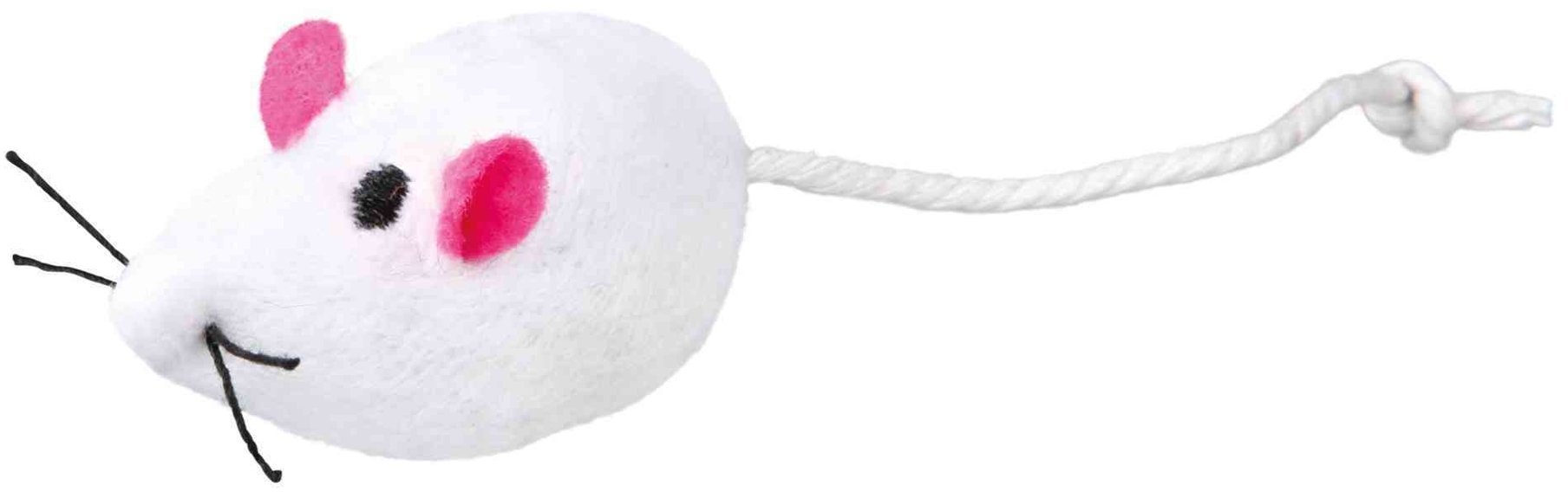 Plyšová myš s rolničkou, 5 cm (2 ks), bílá/šedá